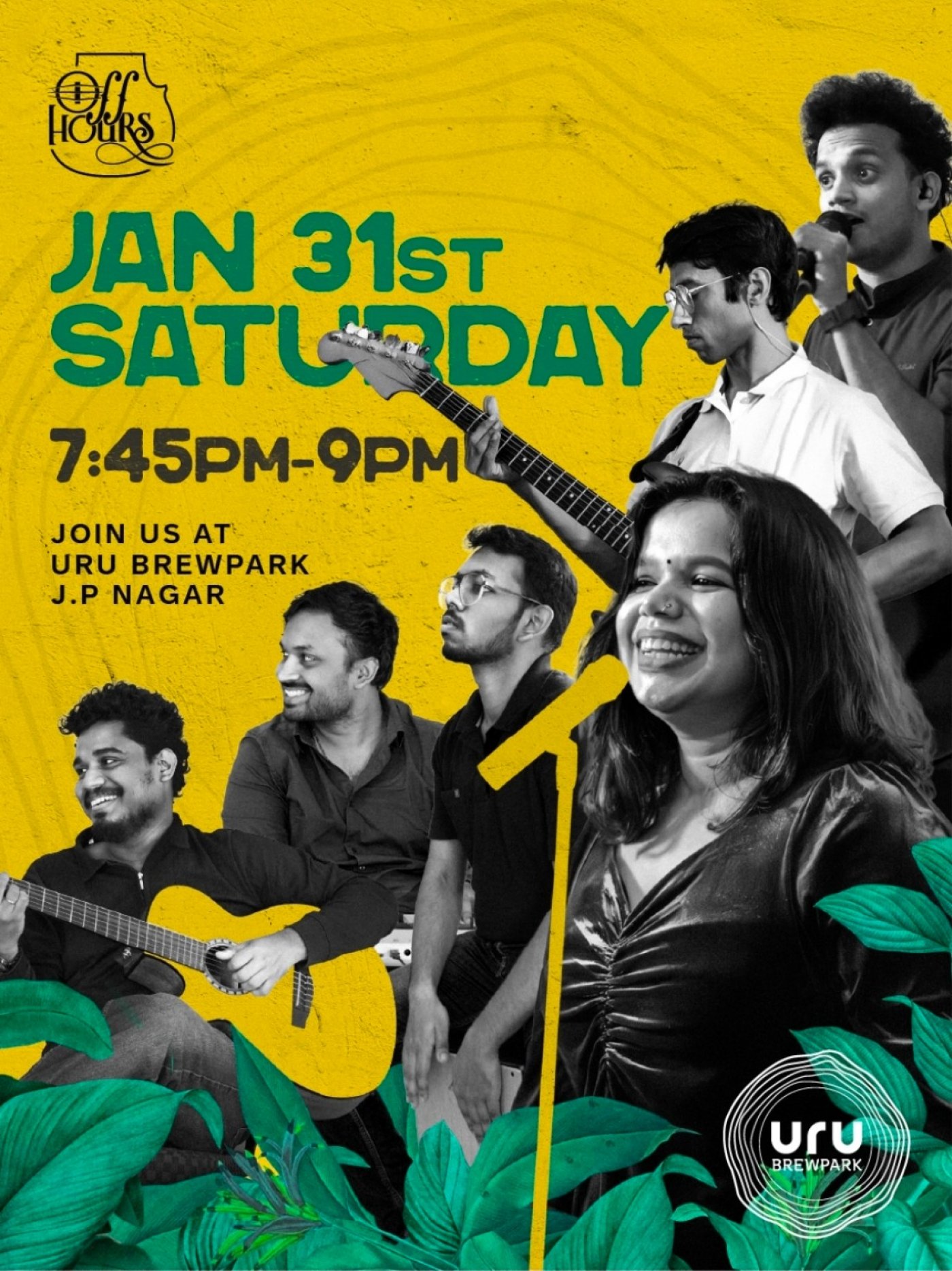 Unwind your weekend with an evening of soulful melodies and vibrant energy as Off Hours takes the stage at URU Brewpark, J.P Nagar. From feel-good grooves to crowd-pleasing favourites, expect a live performance that’s warm, engaging, and perfect for a Saturday night out.