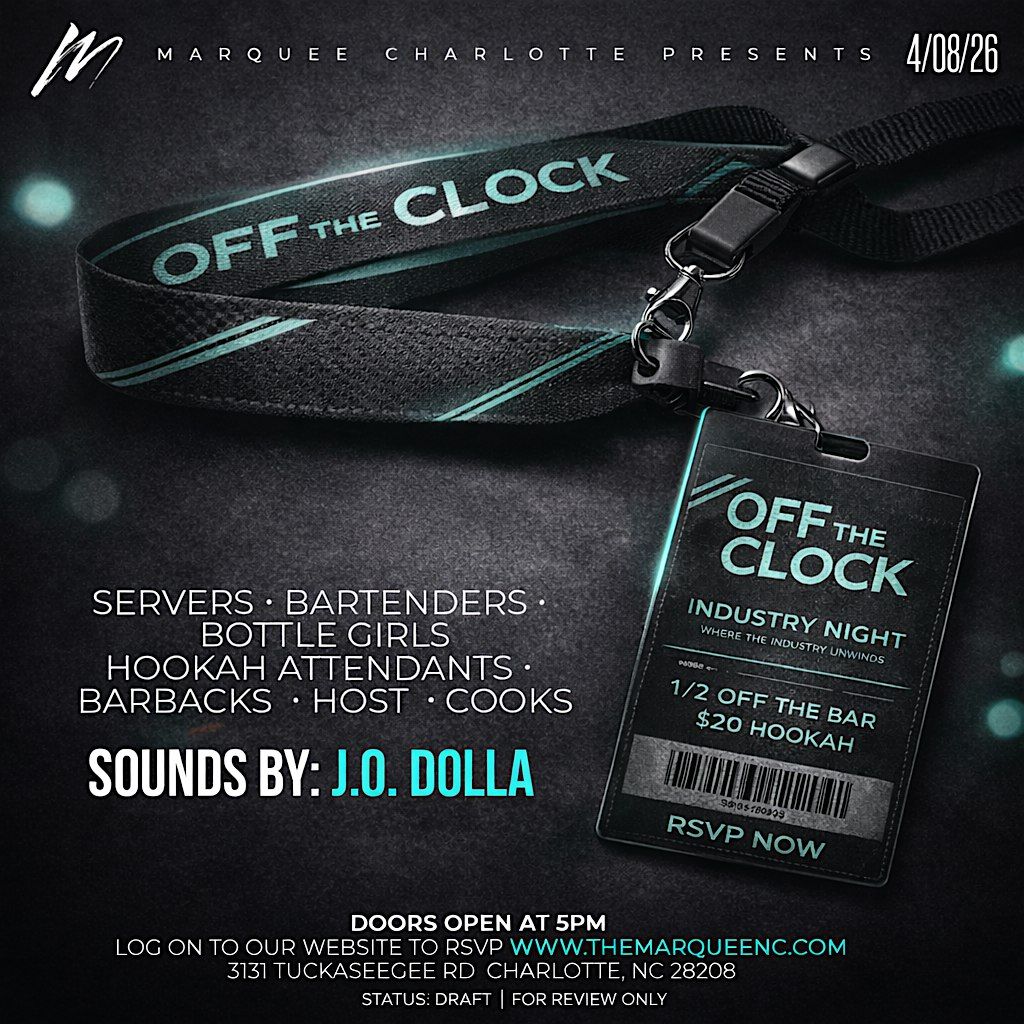 After the shift ends, the night begins. Off The Clock: Industry Night is Marquee Charlotte’s weekly upscale unwind curated exclusively for hospitality and nightlife professionals.