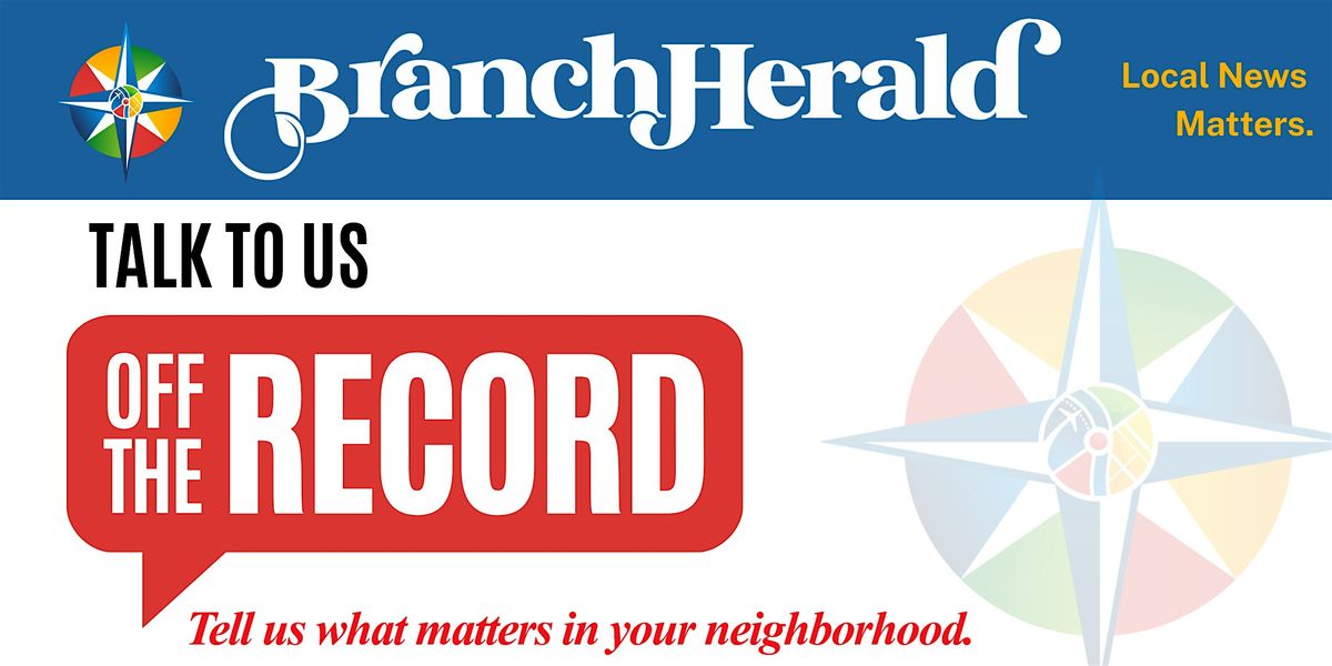 Join The Branch Herald for “Off the Record,” a casual community conversation with publisher Kate Bergeron.