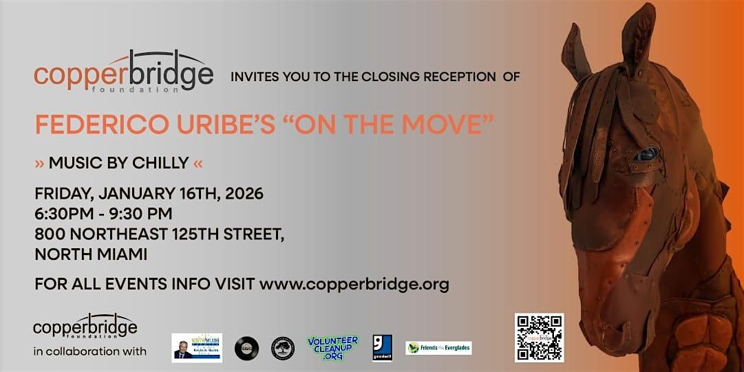 We invite you to join us for the official closing of ON THE MOVE, a deeply meaningful exhibition by Federico Uribe, presented by Copperbridge Foundation.