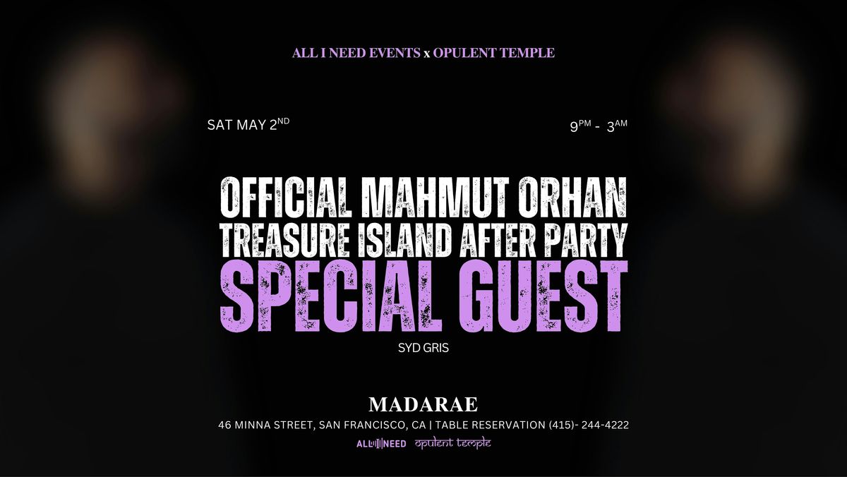 All I Need Events & Opulent Temple invites you to Official Mahmut Orhan Treasure Island After Party with SPECIAL DJ at MadaRae.🔥