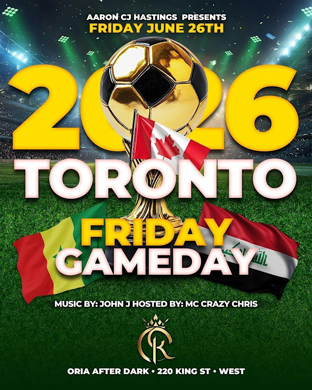 Join us for an electrifying club party in Toronto to celebrate with people from around the world ! Experience the thrill and engery. Game day & After Party. Friday June 26th we Will transform Oria into a vibrant Soccer fiesta. With A Major Late Night Club Party