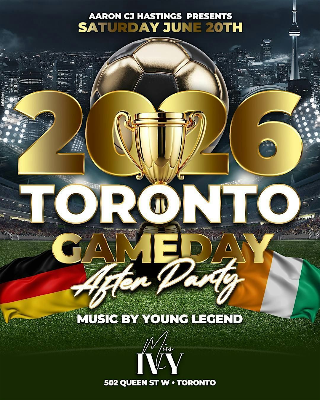 Join us at Miss Ivy for the ultimate Toronto 2026 Game Day Party and After Party! Celebrate the thrilling moments of the game as we honor the game day participants , Germany and Ivory Coast, with soccer fans from around the globe.