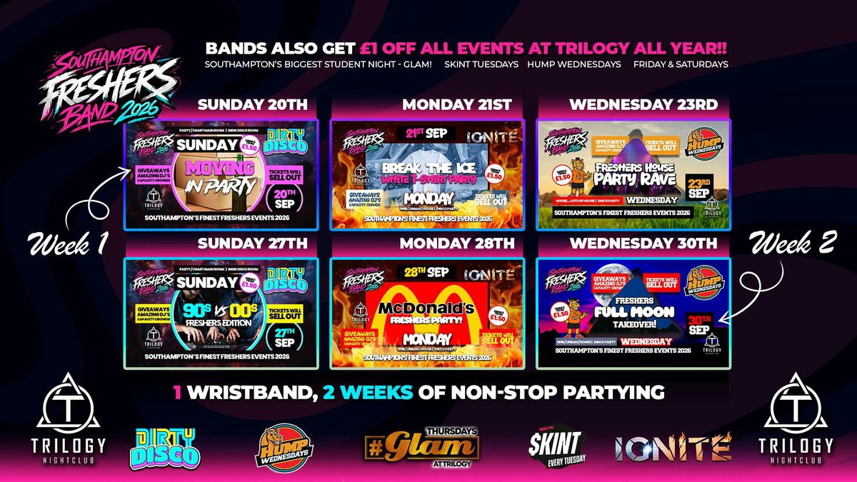 Southampton Freshers Band 2026 π - The Ultimate 2-Week Experience - Guaranteed Sell-Out π1 WRISTBAND. 2 WEEKS OF NON-STOP PARTYING.