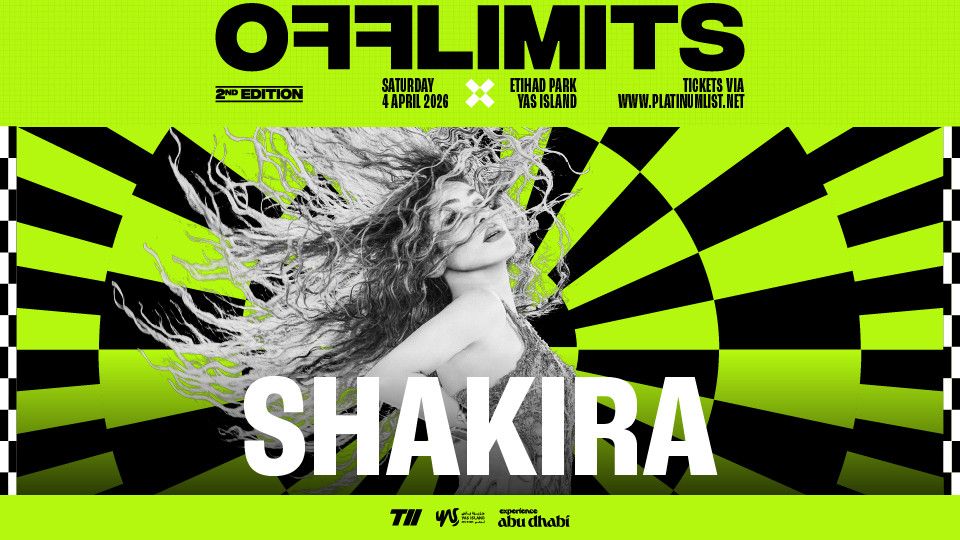 - The Middle East’s largest open-format music festival, OFFLIMITS, returns to Abu Dhabi on April 4, 2026, with global music icon Shakira headlining this year’s edition. Get ready for an electrifying, one-night-only festival experience featuring an explosive mix of pop, hip-hop, and electronic music at the iconic Etihad Park, Yas Island, Abu Dhabi. Don’t miss out — mark your calendars! More artists will be announced soon. Stay tuned.