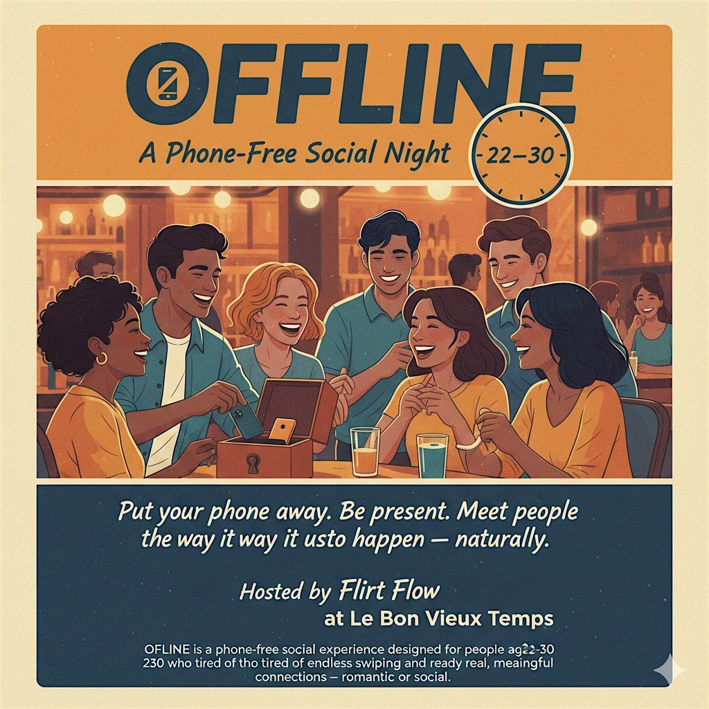 OFFLINE is a phone-free social experience designed for people aged 22–30 who are tired of endless swiping and ready for real, meaningful connections, romantic or social.