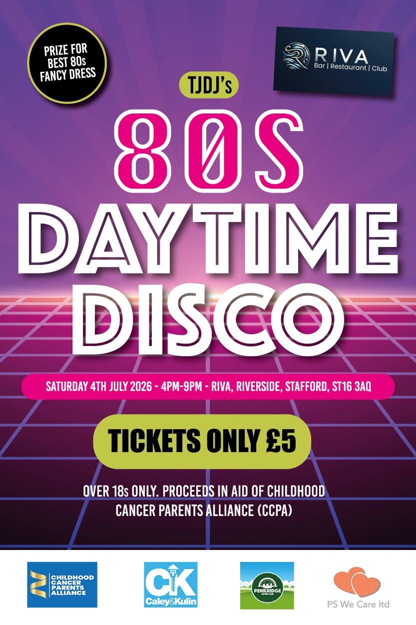 Get ready to rewind the clock and hit the dance floor! Join TJ DJ at RIVA Stafford for a fantastic 80s daytime disco packed with absolute classic floor-fillers and all your favourite retro hits!
