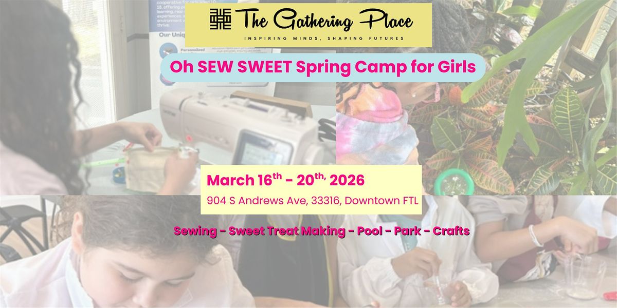 Oh Sew Sweet Spring Camp is a hands-on, screen-free Spring Break experience where girls explore beginner sewing, simple no-bake treat making, and outdoor fun in a supportive small-group setting. Campers create projects like tote bags, fabric bookmarks, headband and scrunchie sets, and roll-up pencil cases while learning foundational sewing machine skills using provided machines, fabric, rulers, markers, and safety gear. In the kitchen, they’ll make treats such as chocolate-covered strawberries, cupcake creations, candy-covered fruits, and mini cheesecake tarts — all ingredients and cute take-home boxes included. Each day also features park visits, field day-style games, and supervised pool time. All materials, supplies, snacks, and activities are included in the price.
