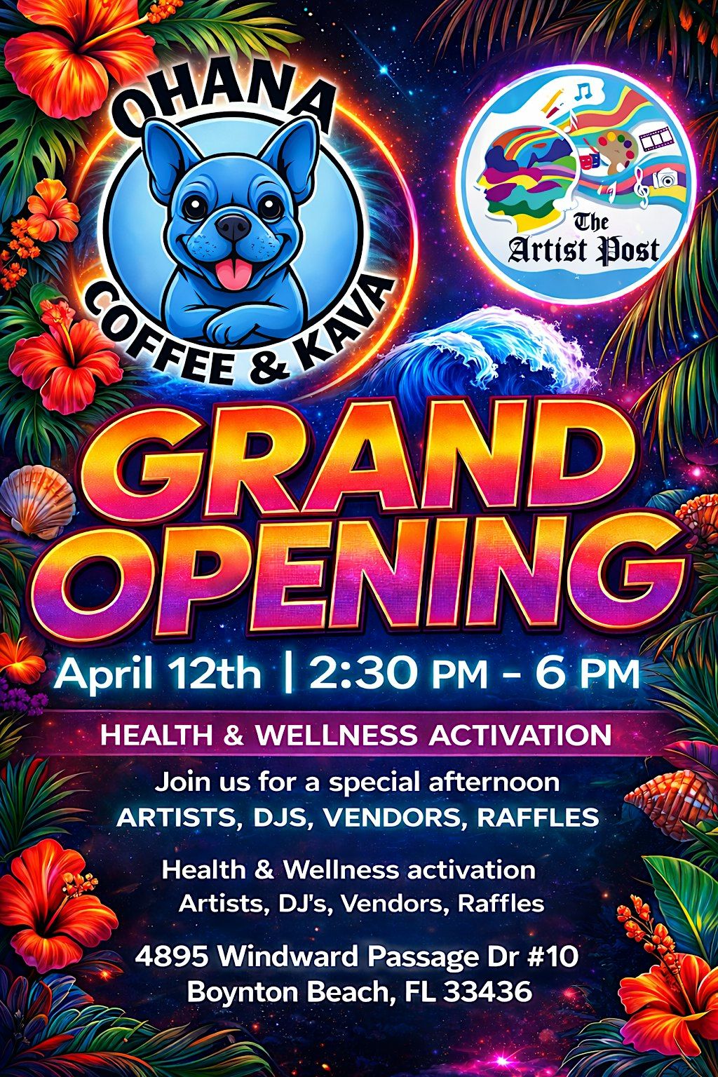 Join us for the Ohana Kava Grand Opening a community celebration of connection, creativity, and wellness! Free vendor spots available. We’ll feature a health & wellness activation and encourage artistic expressions, local makers, and community groups.