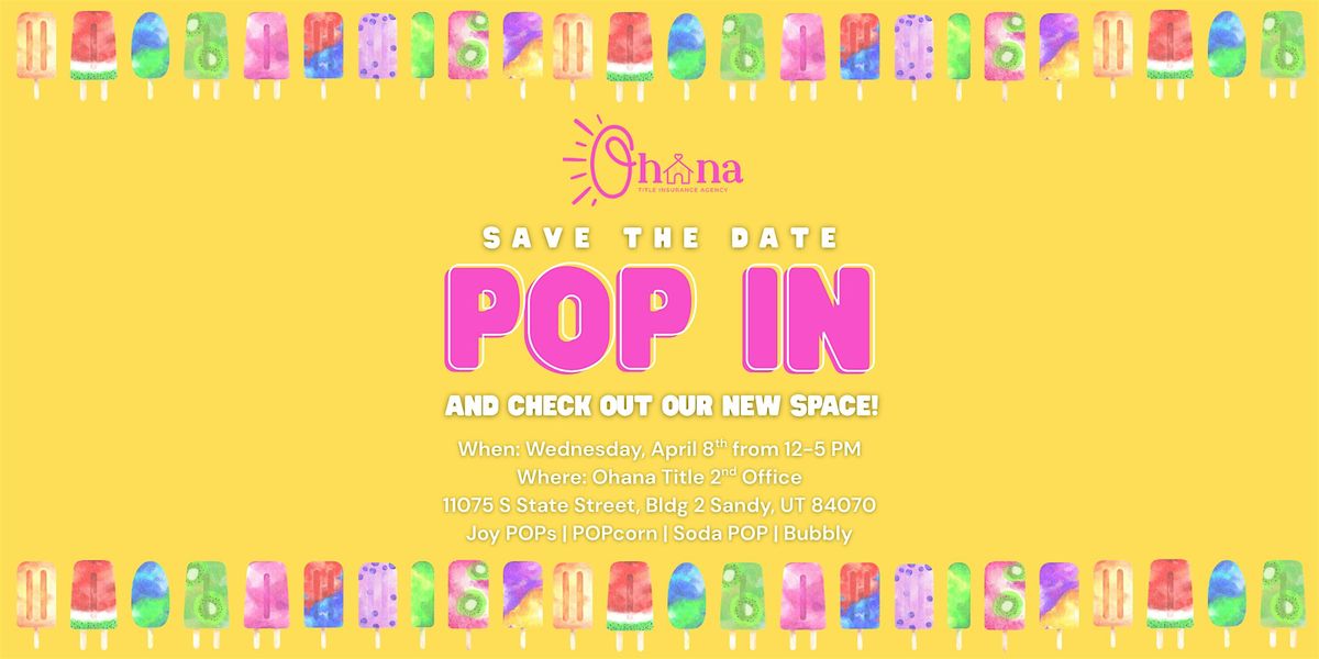 SAVE THE DATE for our Ohana Title POP IN at our new second office! Come check out the new space and enjoy friends, drinks, and snacks.