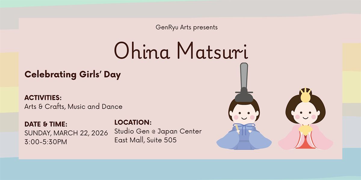 Led by Sensei Melody, GenRyu Arts have been celebrating Japanese cultural arts for over 30 years. In celebration of 2026 Ohina Matsuri, Girls' Day, we'll be hosting an afternoon of activities to celebrate the precious girls in our community. We'll be making emperor and empress dolls, sakura flowers and decorating with ohina matsuri coloring pages.