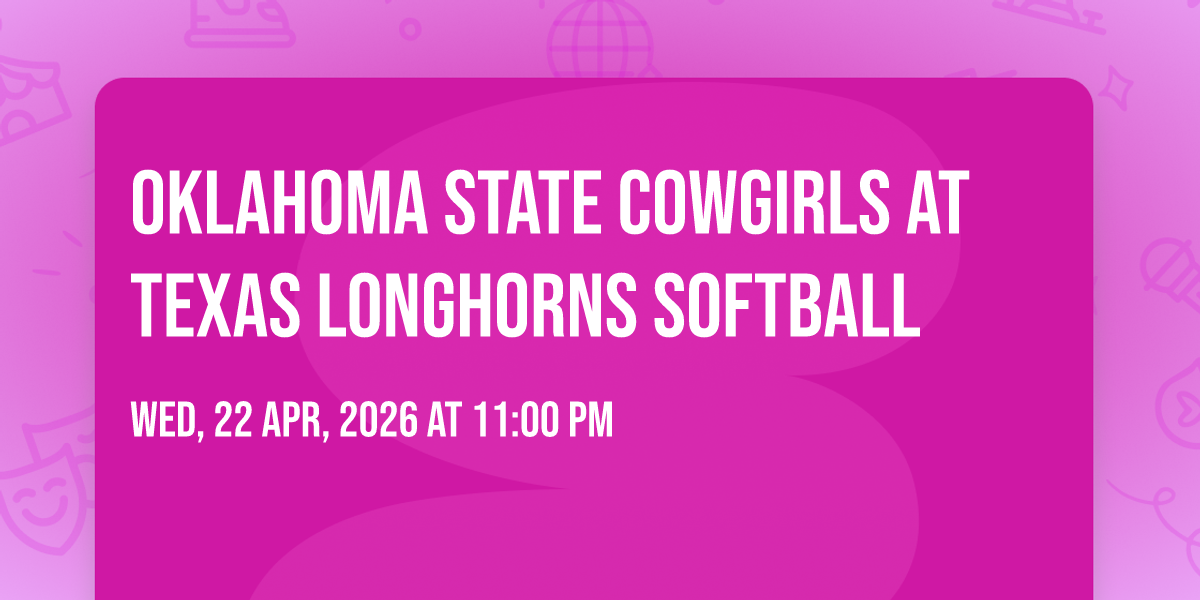 📍 Location: 30.2807, -97.7249🎉 Welcome to Oklahoma State Cowgirls at Texas Longhorns Softball, where dreams come alive and possibilities are endless! 🏛️ Join us at Red and Charline McCombs Field in the heart of Austin, TX for an event that defies expectations. 📅 On April 23rd, 2026 at 12:00 AM, be part of something truly extraordinary as we bring together innovation, entertainment, and pure magic. ✨ Every aspect has been carefully designed to ensure an unforgettable experience for all our guests. Whether you're seeking adventure, inspiration, or simply a break from the ordinary, this event promises to deliver beyond your wildest dreams. 🎊 Prepare for a journey into the extraordinary!