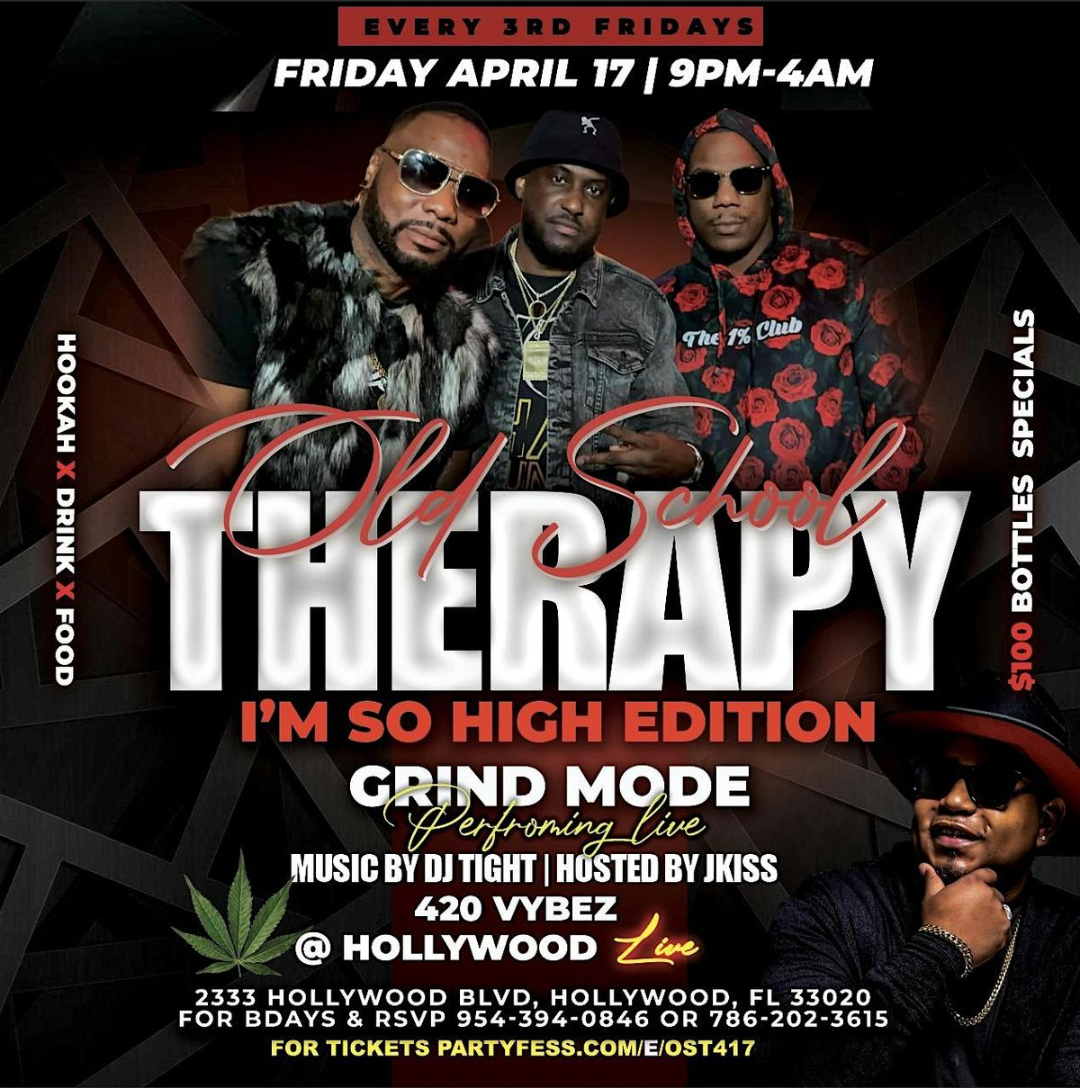 Welcome to Old School Therapy - Hip Hop Party! Grind mode performing Live. Get ready to groove and move at Hollywood Live Restaurant & Lounge. Join us on Friday April 17 for a night filled with classic hip hop beats and good vibes.