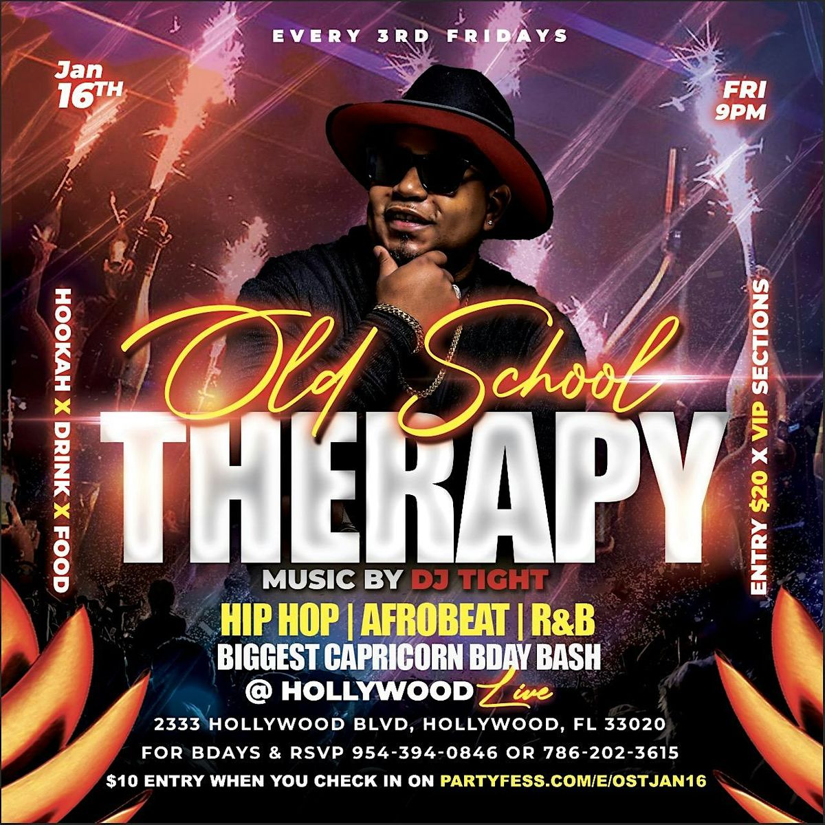 Welcome to Old School Therapy - Hip Hop Party! Get ready to groove and move at Hollywood Live Restaurant & Lounge. Join us on January 16, 2026 at 9:00 PM for a night filled with classic hip hop beats and good vibes.