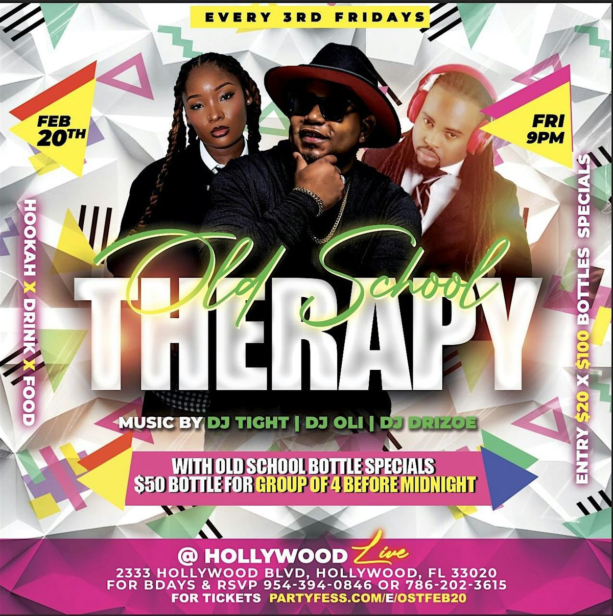Welcome to Old School Therapy - Hip Hop Party! Get ready to groove and move at Hollywood Live Restaurant & Lounge. Join us on Feb 20, 2026 at 9:00 PM for a night filled with classic hip hop beats and good vibes.