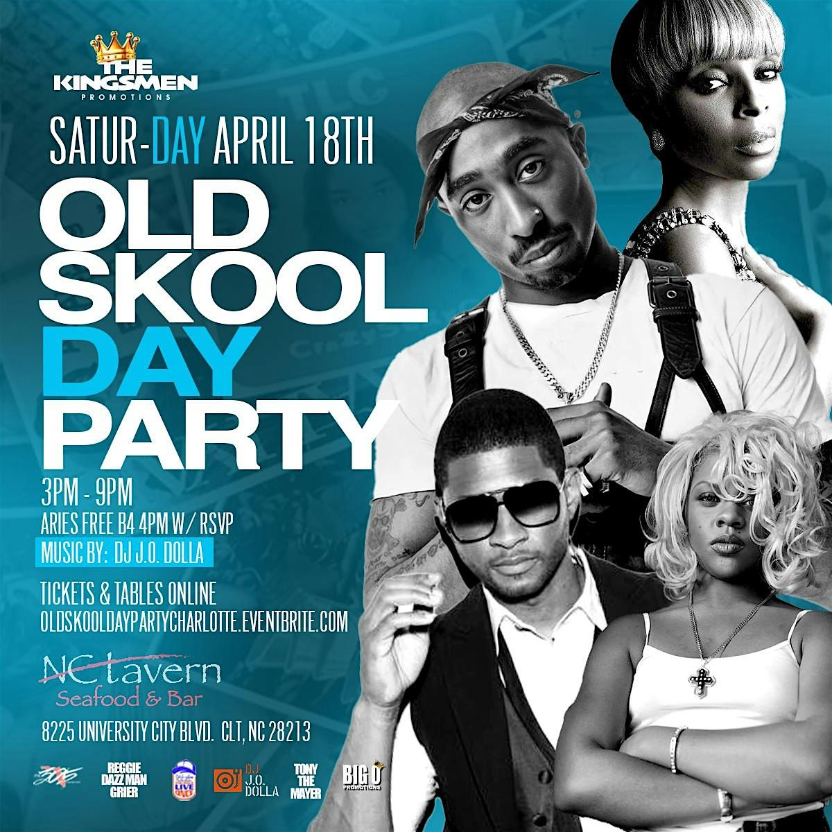 THE KINGSMEN PRESENTS: OLD SKOOL DAY PARTY W/ MUSIC BY: DJ J.O. DOLLA SATUR-DAY APRIL 18TH AT NC TAVERN 8225 UNIVERSITY BLVD. CLT, NC 28213 3PM - 9PM ARIES FREE B4 4PM W/ RSVP, TICKETS & TABLES ONLINE OLDSKOOLDAYPARTYCHARLOTTE.EVENTBRITE.COM
