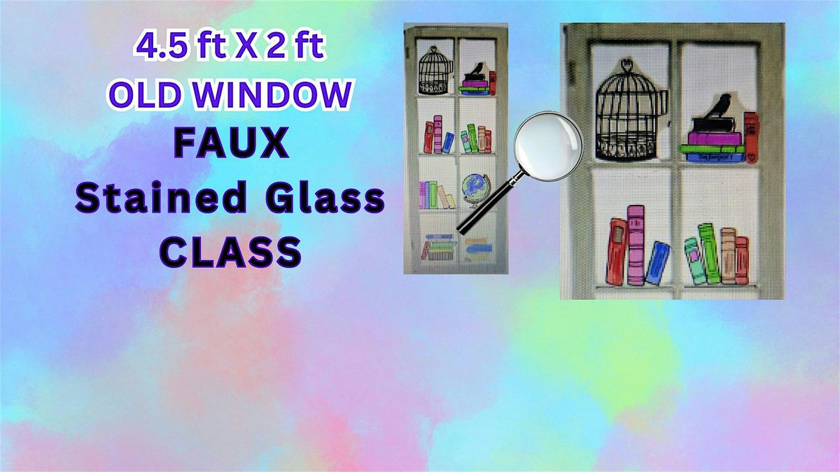 THIS IS A 2 PART WORKSHOP. Friday evening 5 pm to 7 pm and Saturday 1pm to 4 pm. Looks like real stained glass! Create a beautiful "library of books" faux stained glass piece. Overall window size is 4 1/2 feet X 2 feet Class size is limited. For artists 12 years and older. All supplies included. $150