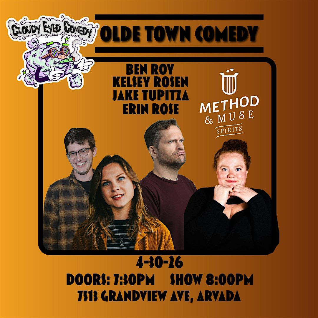 Cloudy Eyed Comedy is bringing Stand up Comedy to the middle of Olde Town Arvada at Method and Muse! You want to miss our first show, April 30th!!! We have a hilarious lineup of Jake Tupitza(DCU, Netflix is Joke Fest), Erin Rose (DCU), Kelsey Rosen (DCU, High Plains Comedy Fest) and our headliner, Ben Roy!!!!