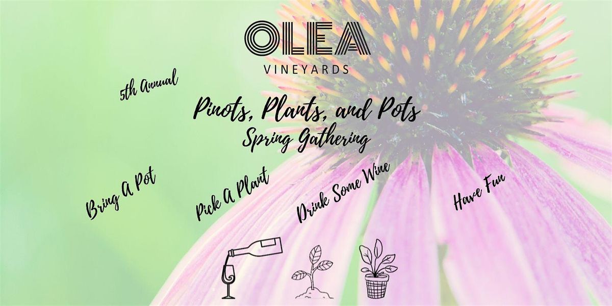 Olea Vineyards 5th Annual Pinots, Plants and Pots Spring Gathering! Join us for a fun-filled day where we will celebrate all things spring. Bring your friends, and bring a pot; we will have plants to plant, wine to drink, food to eat, and fun to share! We will be celebrating some new releases of Olea Vineyards wines, and will have some fan favorites available as well.