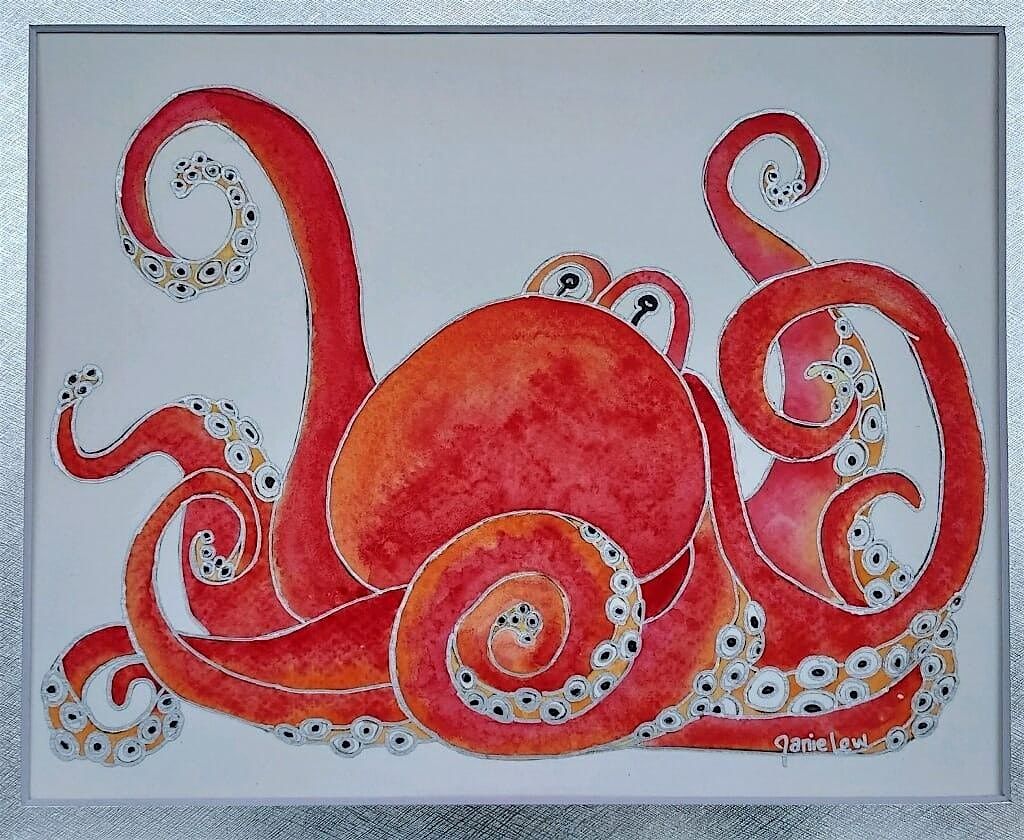 Join us at The Salty Mermaid Art Gallery & Studio for a playful and vibrant watercolor class where you’ll create your very own 11 x 14 matted painting of Oliver, our curly-armed coastal friend.