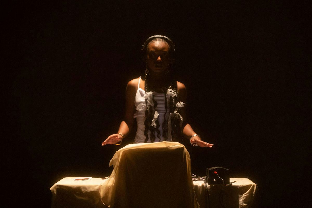 Olukemi Lijadu, 'Image Behaviour' (2022). Performance at ICA, London. Courtesy the artist, photography by Christa Holk