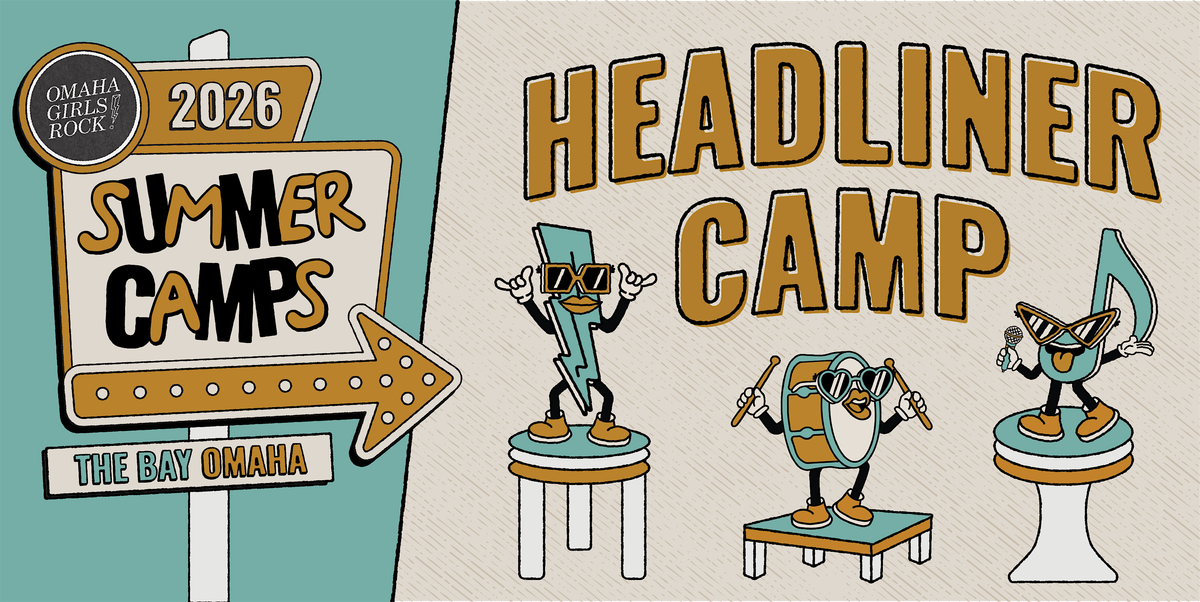 This week of camp includes instrument instruction, band practice, creation of original songs, and a final performance at a live music venue for our youth! In addition to their performance, teen campers participate in collaborative projects between Omaha Girls Rock artists and community member mentors. (*Youth registering should be 13 years-old to 18 and beginning their senior-year in high school in August 2026.)