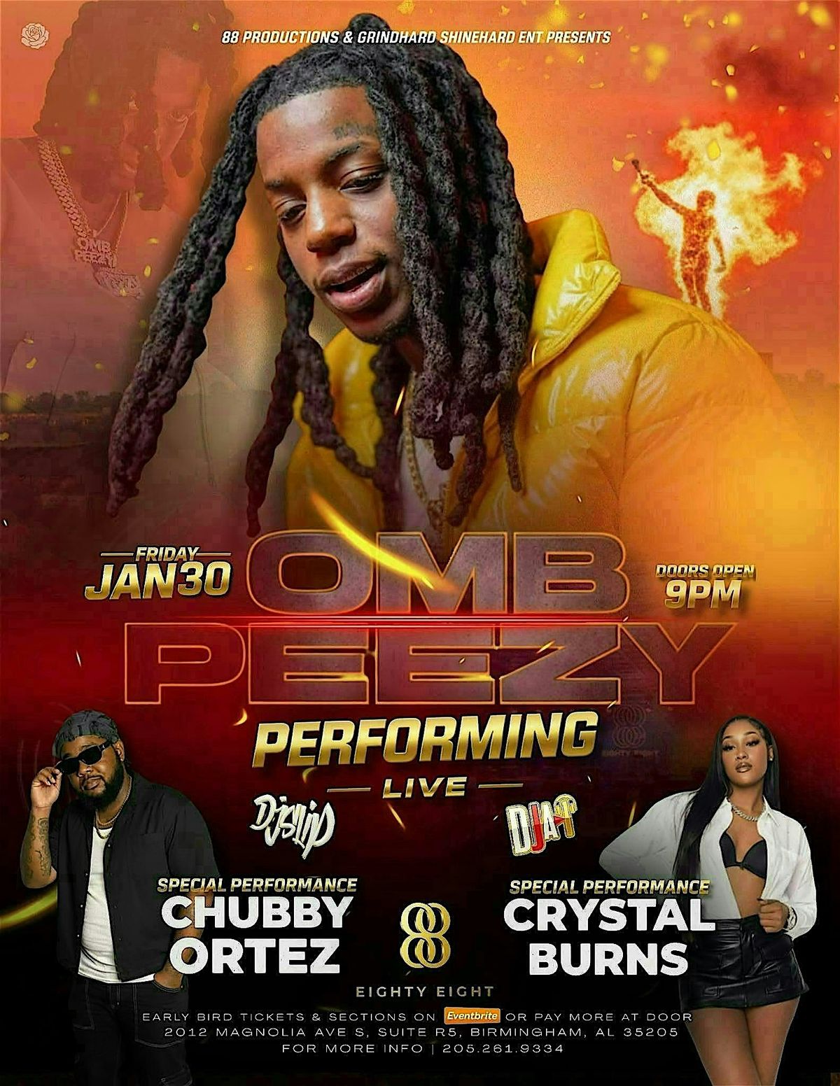 Get ready to experience OMB Peezy performing live right here in Birmingham! This is your chance to catch the vibes and energy in person, so gather your crew and don't miss out on an unforgettable night. Good music, good times, waiting for you!