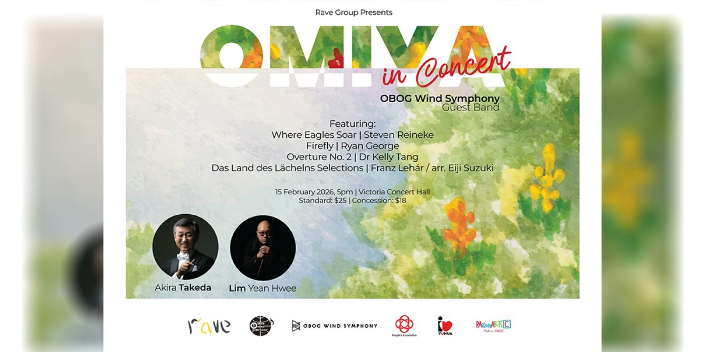 Omiya in Concert presents Japan’s Omiya Wind Symphony in Singapore, joined by guest band OBOG Wind Symphony. The programme highlights Omiya’s artistry while exploring interplay between the two ensembles, creating a performance shaped by collaboration and shared musical dialogue.