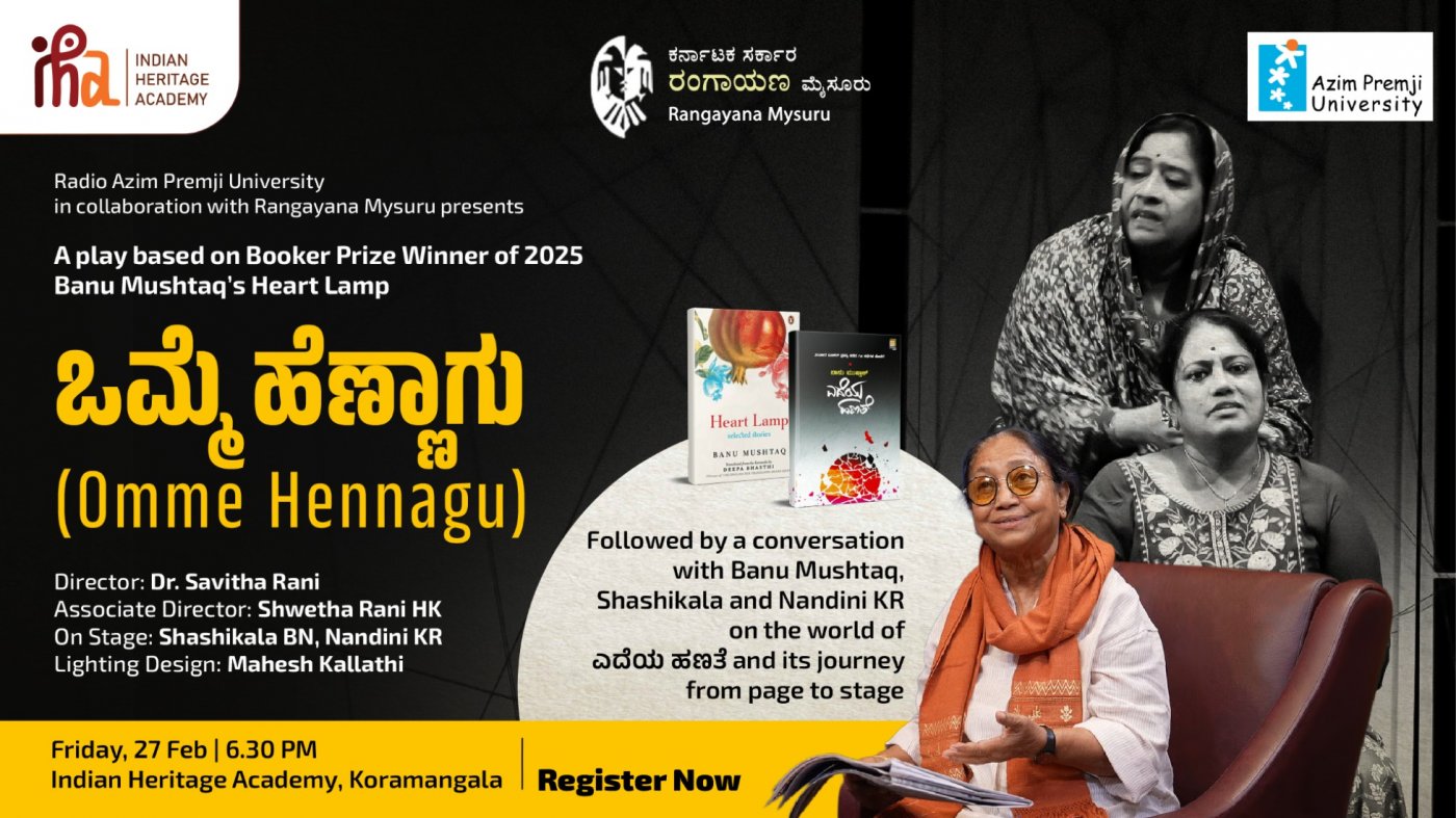 Banu Mushtaq will be there, in conversation with the cast after the play. The event is hosted by IHA in collaboration with Azim Premji University.