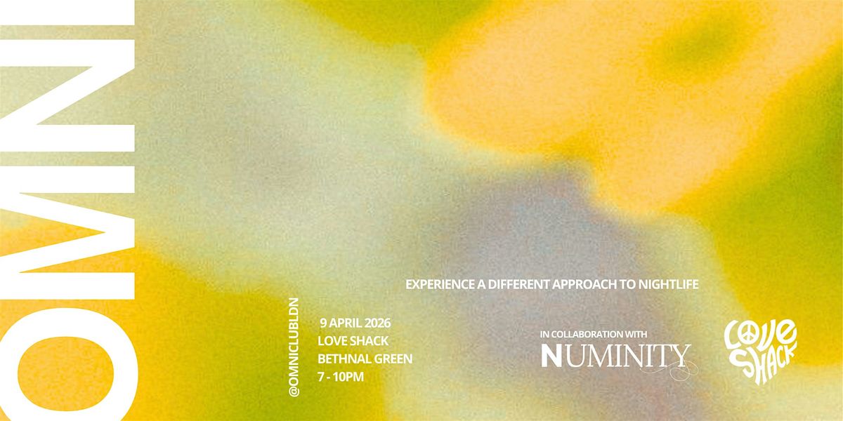 In collaboration with Numinity and Love Shack, we present OMNI, a different approach to clubbing. An event that is founded on the belief that nightlife can be exhilarating without being exhausting, and that a dance floor is welcoming when you remove the pressure to perform, drink heavily, or stay out late. It’s an experiment in carving out a space where people who love music can lose themselves while still feeling held by a sense of communal care, openness, and shared purpose.