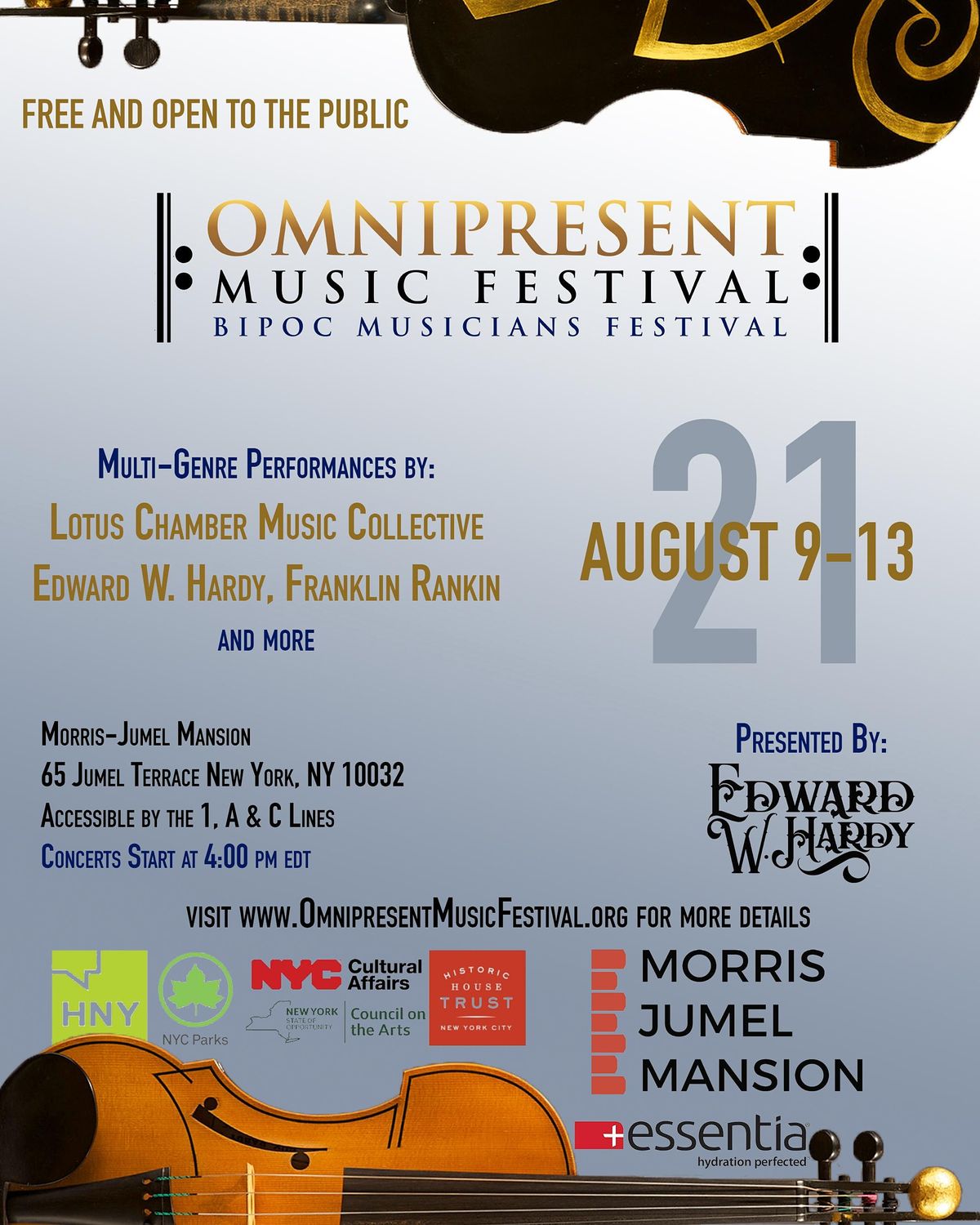 Location: Morris-Jumel Mansion is the oldest remaining house in Manhattan. Situated in beautiful Roger Morris Park, the museum regularly hosts outdoor summer concerts and other events designed to bring our community together to enjoy nature, the arts, and our shared history. We are pleased to partner with violinist Edward W. Hardy and the musicians of the Omnipresent Music Festival to host this exciting and meaningful new concert series for our community.