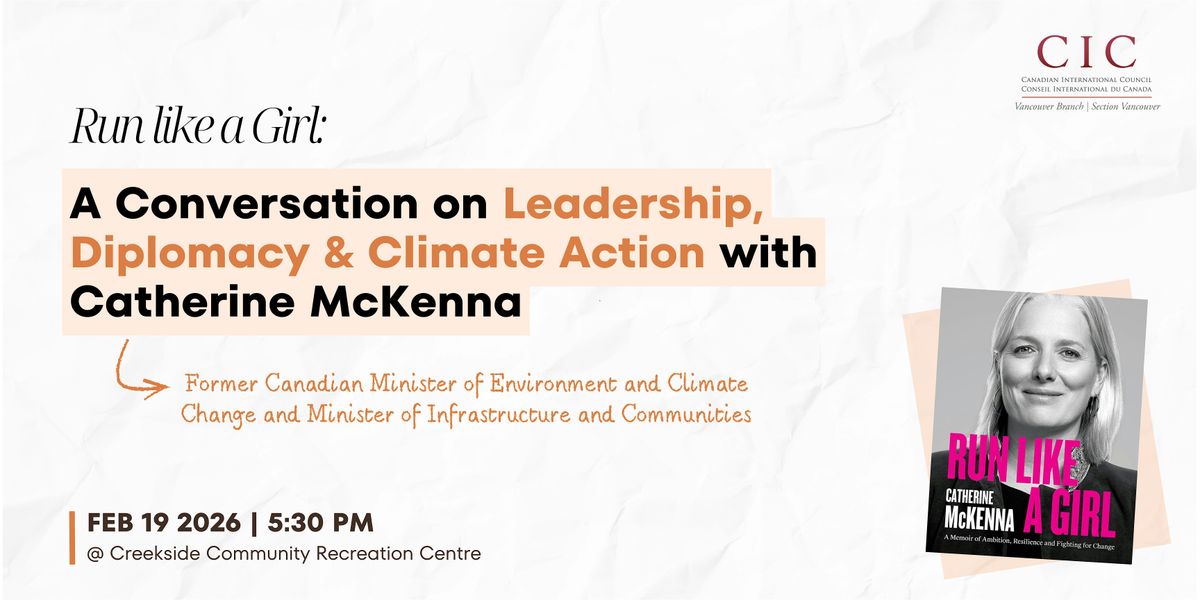 Join us for an inspiring and timely conversation with the Honourable Catherine McKenna, former Canadian Minister of Environment and Climate Change and Minister of Infrastructure and Communities, on Thursday, February 19 in Vancouver.