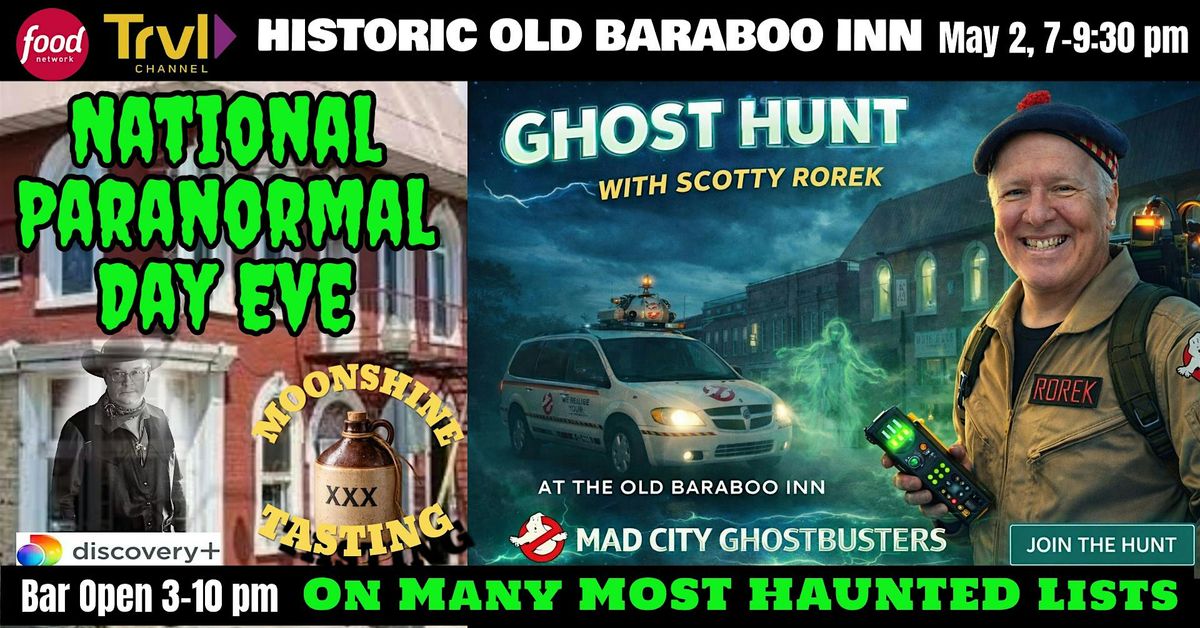 GHOST HUNT at 7 pm with Scotty and the Mad City Ghostbusters! The spirits of the Old Baraboo Inn know them well and enjoy the communication! You're in for a treat!! Handheld ghost hunting equipment is welcome.
