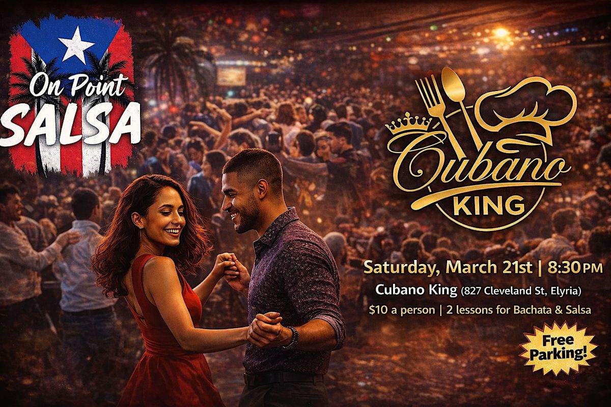 Join On Point Salsa on Saturday March 28th at 8:30pm for an exciting night of Salsa and Bachata dancing at Cubano King in Elyria!
