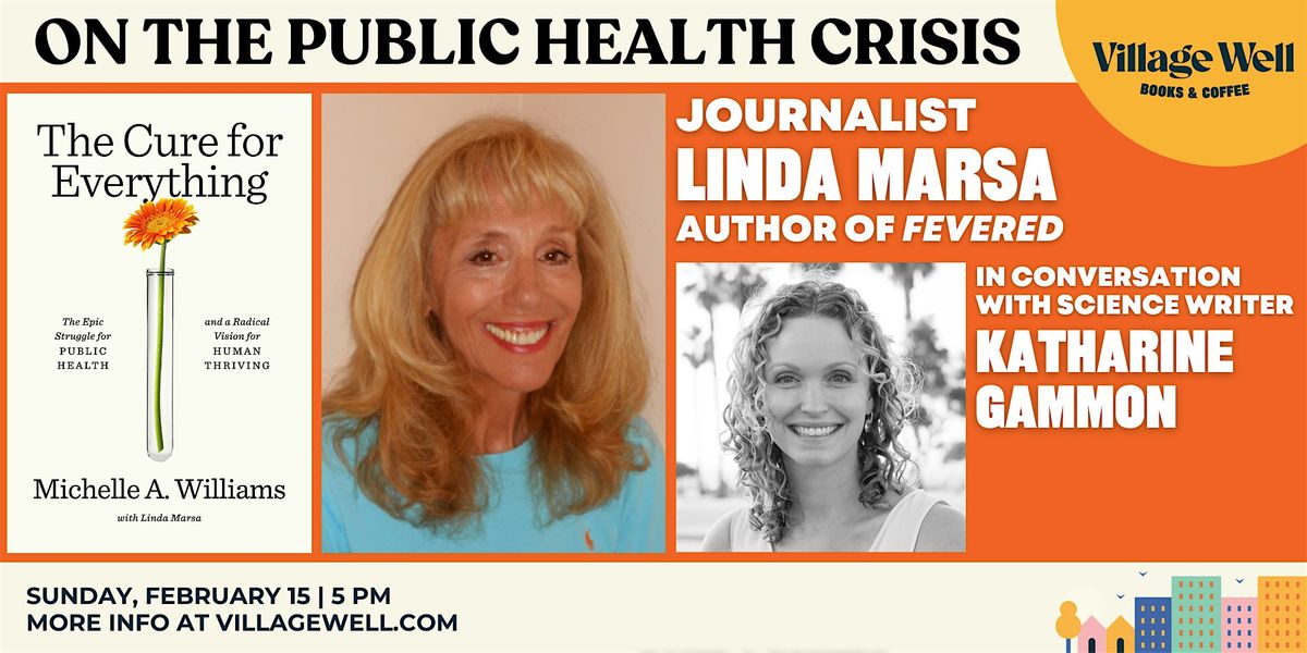 Join us at Village Well Books & Coffee for a Q&A with Linda Marsa, who wrote The Cure For Everything with Dr. Michelle Williams. For decades, Americans have believed that medical breakthroughs – new drugs, technologies, and cures – are the key to longer, healthier lives. But the numbers point to a different reality: the United States now has the shortest life expectancy of any wealthy nation, despite spending more than any country on healthcare. That’s because our problem isn’t pathological – it’s the fact that we’ve abandoned public health.