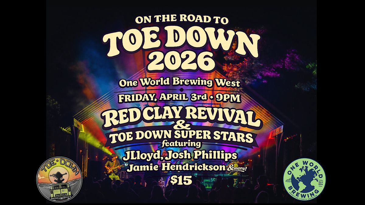 Join us at One World Brewing West for a high-energy night of live music as Red Clay Revival teams up with the Toe Down Superstars featuring JLloyd, Josh Phillips, Jamie Hendrickson, and more special guests.