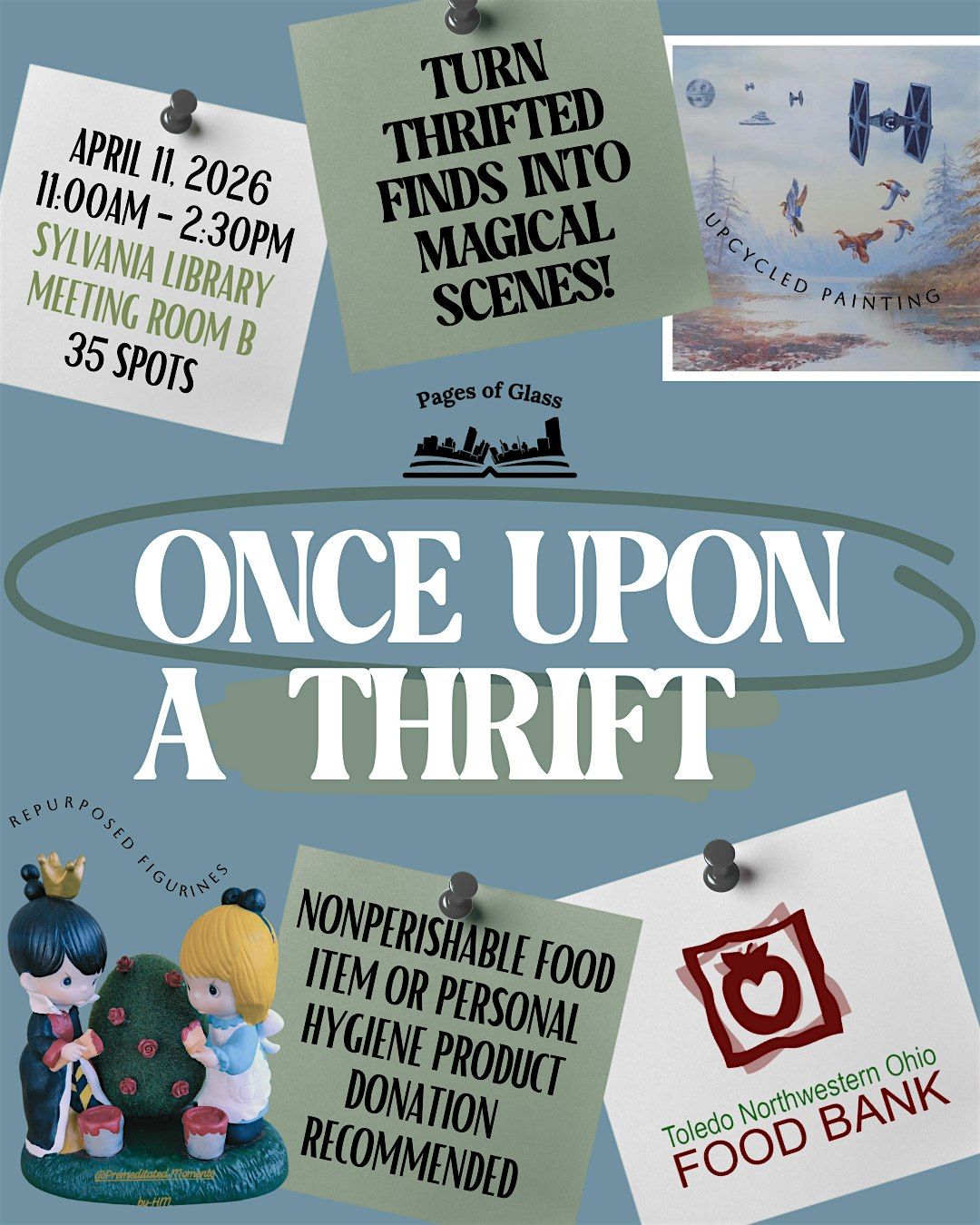 Join us for a creative night of transforming thrifted figurines and paintings into whimsical, fantasy-inspired works of art using clay, paint, and imagination. This event is free to attend, and all skill levels are welcome. While admission is free, we recommend bringing a nonperishable food item or personal hygiene product to donate to the Toledo Northwestern Ohio Food Bank to help support our community. <3