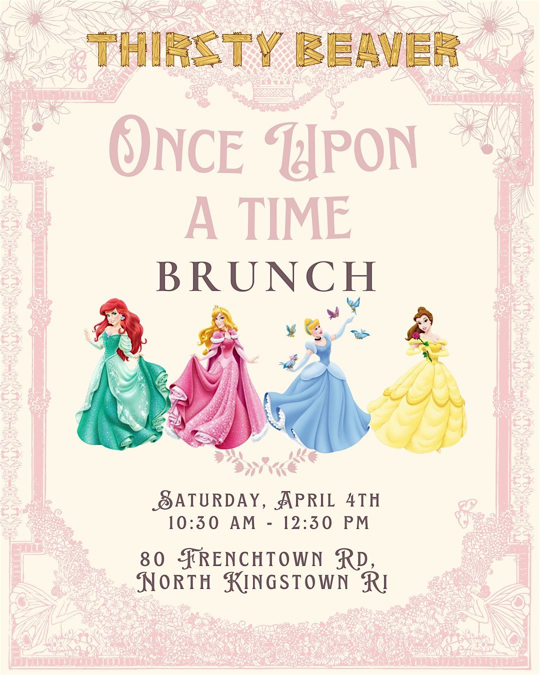 Join us for brunch with all of your favorite princesses on Saturday, April 4th at 10:30 am at Thirsty Beaver North Kingstown!About this Event