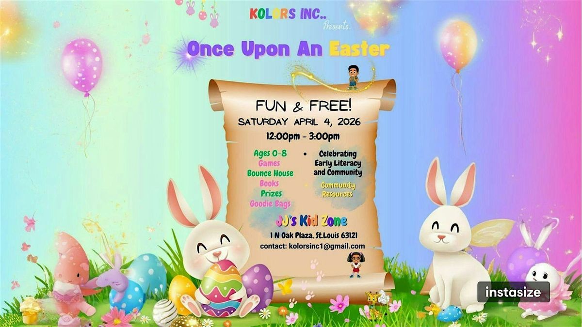 Welcome to Once Upon An Easter! Join Kolors Inc., an organization dedicated to promoting early literacy through community outreach, for a fun-filled Easter event. Kids ages 0-8 can enjoy games, a bounce house, prizes, books, goodie bags, and much more. Bring your little ones for an afternoon of egg-citement and special moments. Everyone is guaranteed to have a hoppy time! Don't miss this free and festive event.