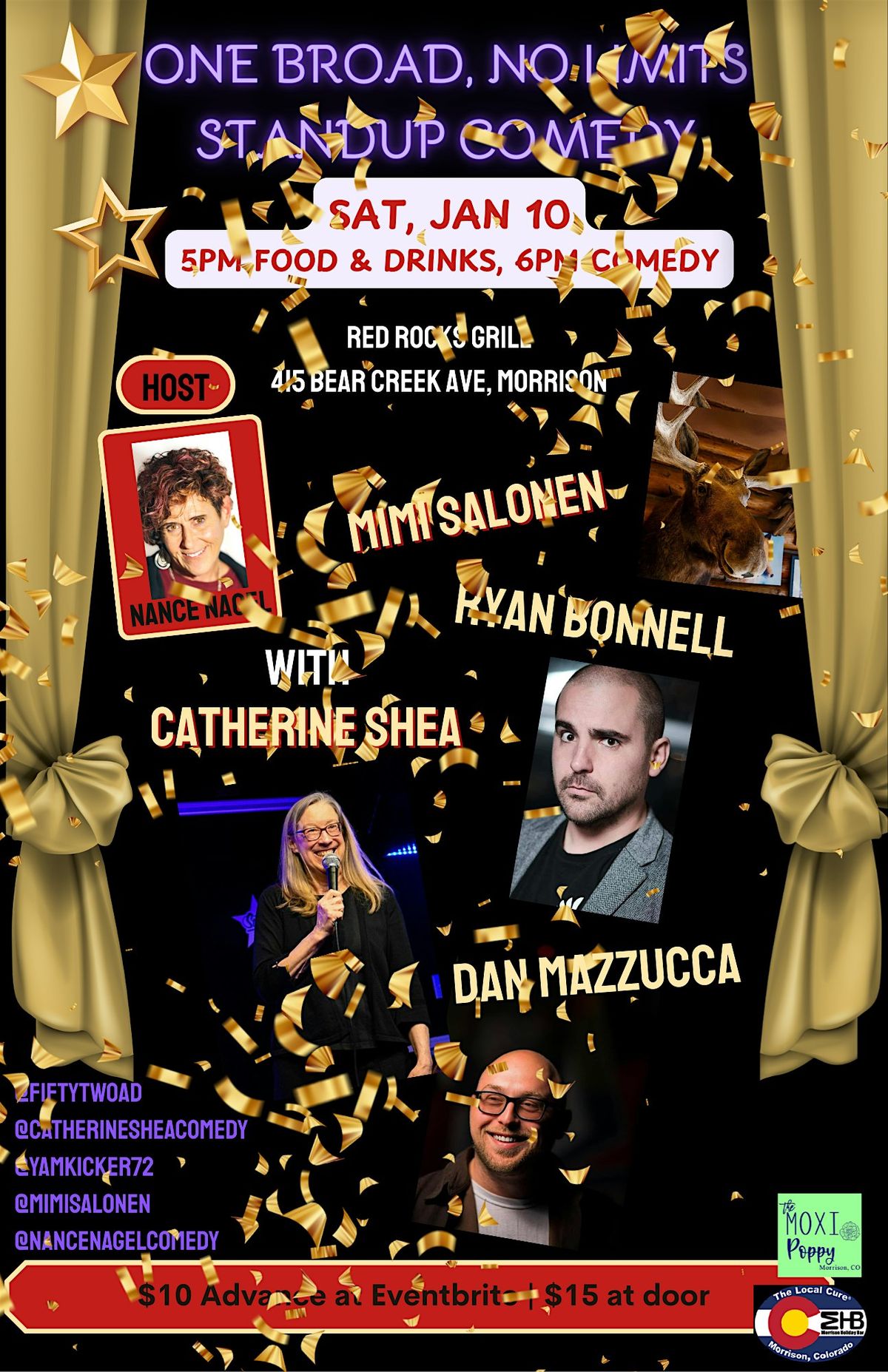 Get out for food, drinks, friends, and laughs. Another unbelievably funny lineup at the monthly standup show in Morrison!