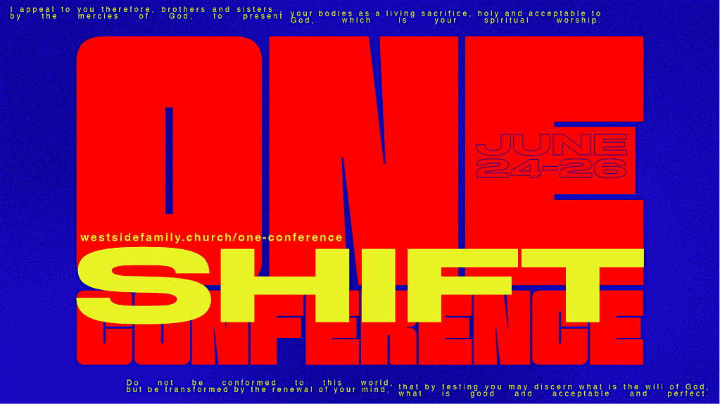 Calling all students! Join us June 24-26 for One Conference 2026—a transformative 2.5-day event at Westside Family Church's Lenexa campus. Based on Romans 12:2, we're challenging students to shift away from the world's mold and into the renewed life Jesus offers. Through powerful worship, impactful messages, and authentic community, students will discover what it means to move from conformity to clarity, purpose, and freedom. Whether you're taking your first step with Jesus or going deeper in your faith, this summer experience is designed for you. Bring your friends!