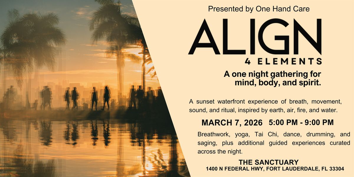 Presented by One Hand Care, ALIGN 4 Elements offers a grounded yet elevated environment for community, creativity, and meaningful experience.