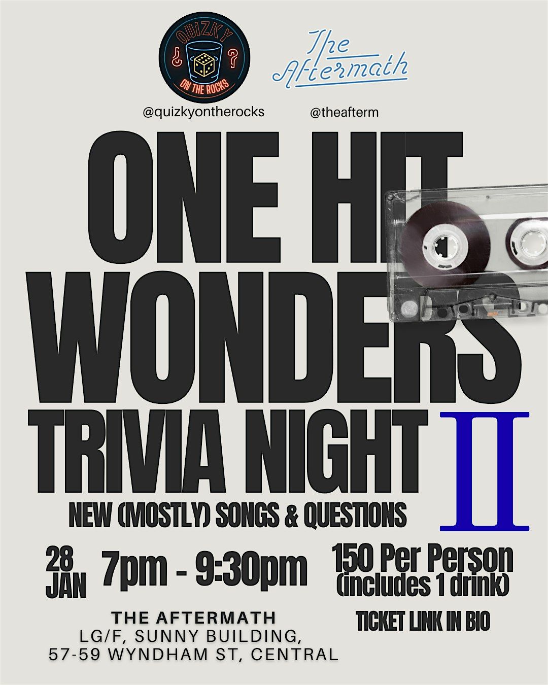 After the iconic success of our first One Hit Wonders Trivia Night, we’re back at The Aftermath for another shameless nostalgia trip - with mostly brand-new songs, fresh questions, and zero repeat offenders (okay, maybe one…or two…but they deserved it).