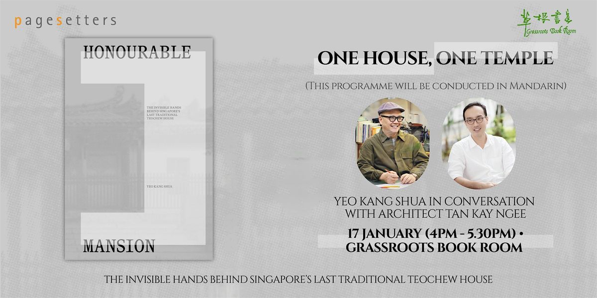 With leading architect Tan Kay Ngee, Author Yeo Kang Shua discusses Honourable Mansion: The Invisible Hands behind Singapore’s Last Traditional Teochew House alongside his earlier work《粵海清廟:建築與歷史的對話》/ Wak Hai Cheng Bio: A Dialogue between Architecture and History. Their conversation will thread these two books into an understanding of “one house, one temple,” exploring Teochew architecture, spatial practices, and cultural memory.