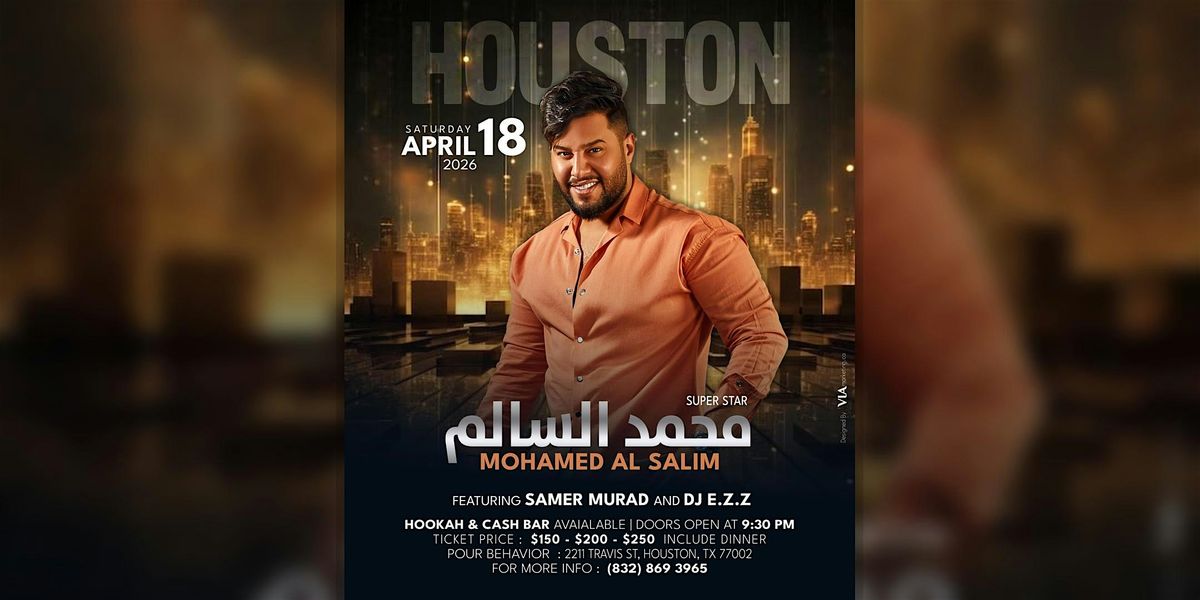 Join us in Houston on April 18, 2026 for One Night Only with Mohamed Al Salim | محمد السالم for a night of live music, good vibes, and celebration. Doors open at 9:30 PM.