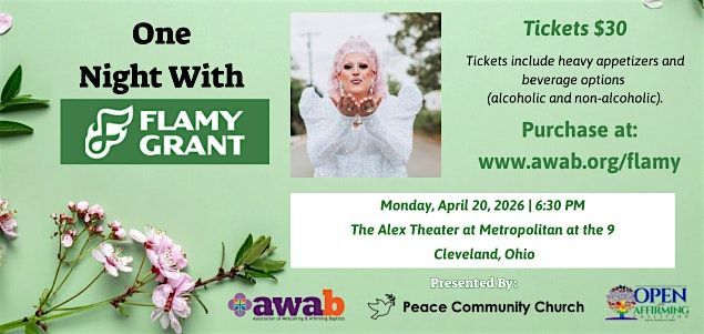 Join us for an unforgettable night of music and celebration featuring Flamy Grant, an award-winning, Billboard-charted drag artist whose soulful blend of folk, gospel, and roots music has captivated audiences across the country.
