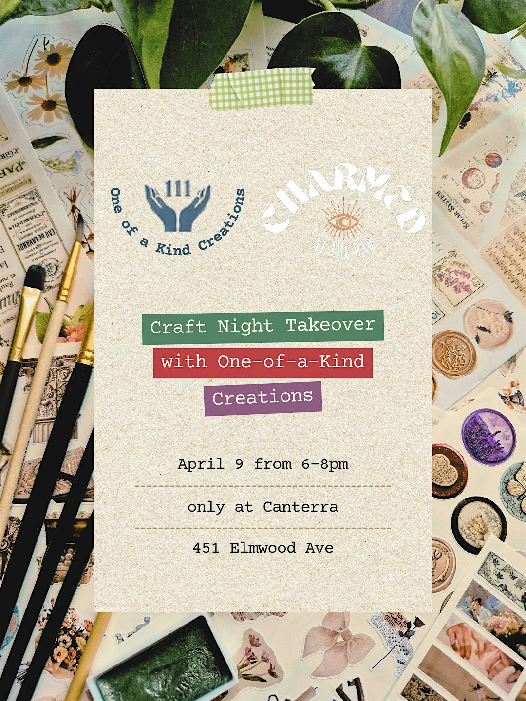 Join us for a cozy evening of crafts with One of a Kind Creations and Charmed at the Bar! Dive into a craft takeover like no other, filled with creativity and fun. Meet cool people, get inspired, and take home something uniquely your own. The crafting is donation-based, and there will be items for purchase through Charmed at the Bar. Don't miss out on this one-of-a-kind experience happening right at Canterra. See you there!