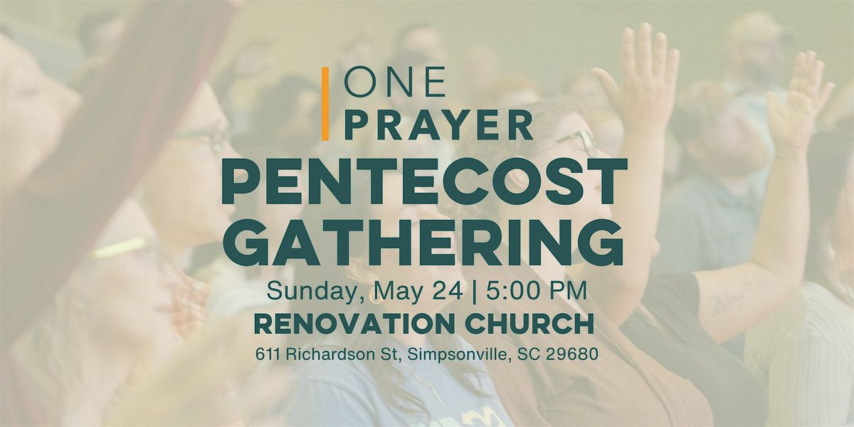 The ONE Prayer Pentecost Gathering is a regional worship gathering bringing together churches from across the Upstate for a unified night of prayer and worship.