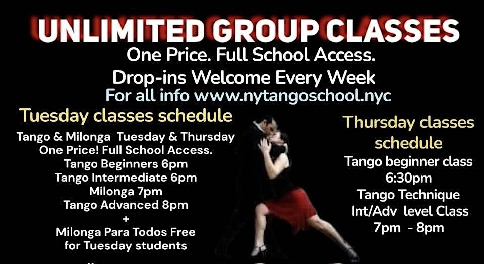 Drop ins welcome every week $30 one class. with Tuesday Dance party www.nytangoschool.nyc