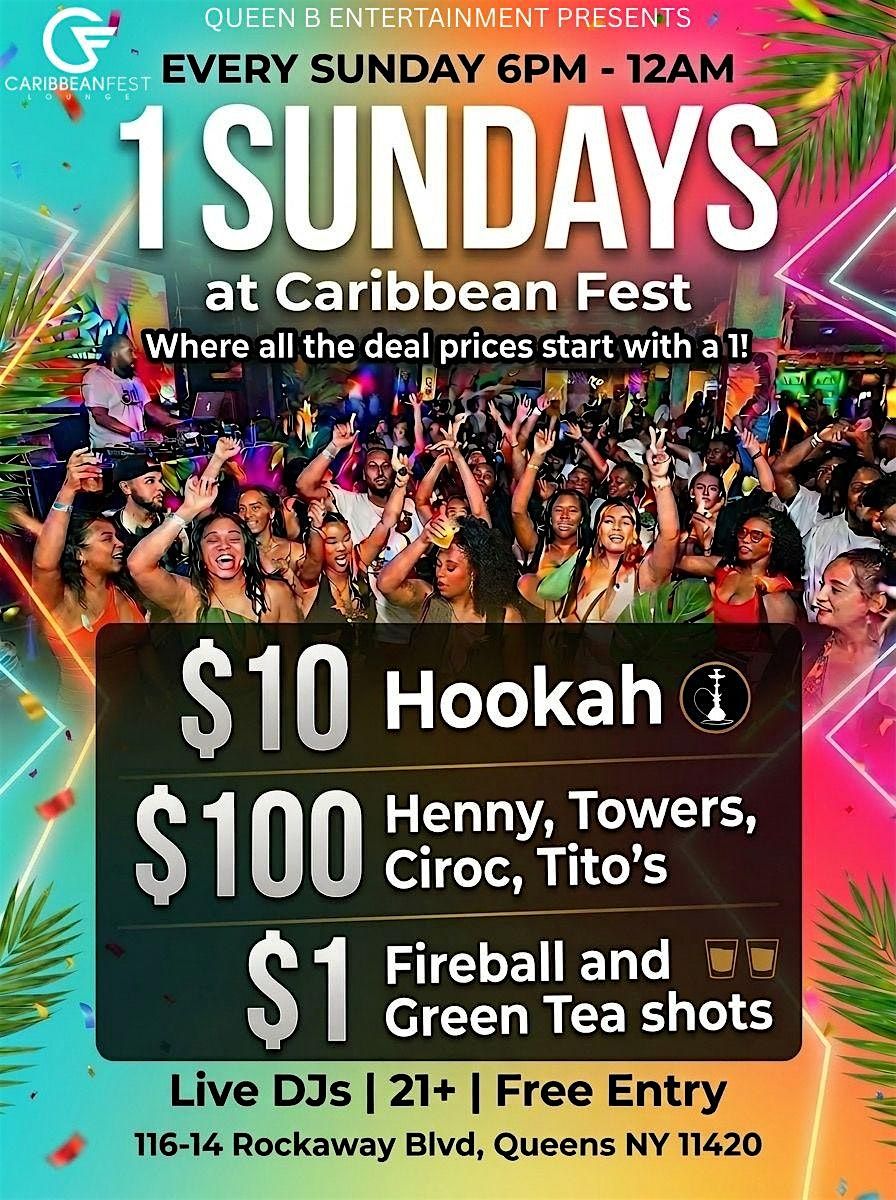 Sundays in Queens just got a whole lot betterWe’re bringing you 1 Sundays at Caribbean Fest where the vibes are high and the prices are low